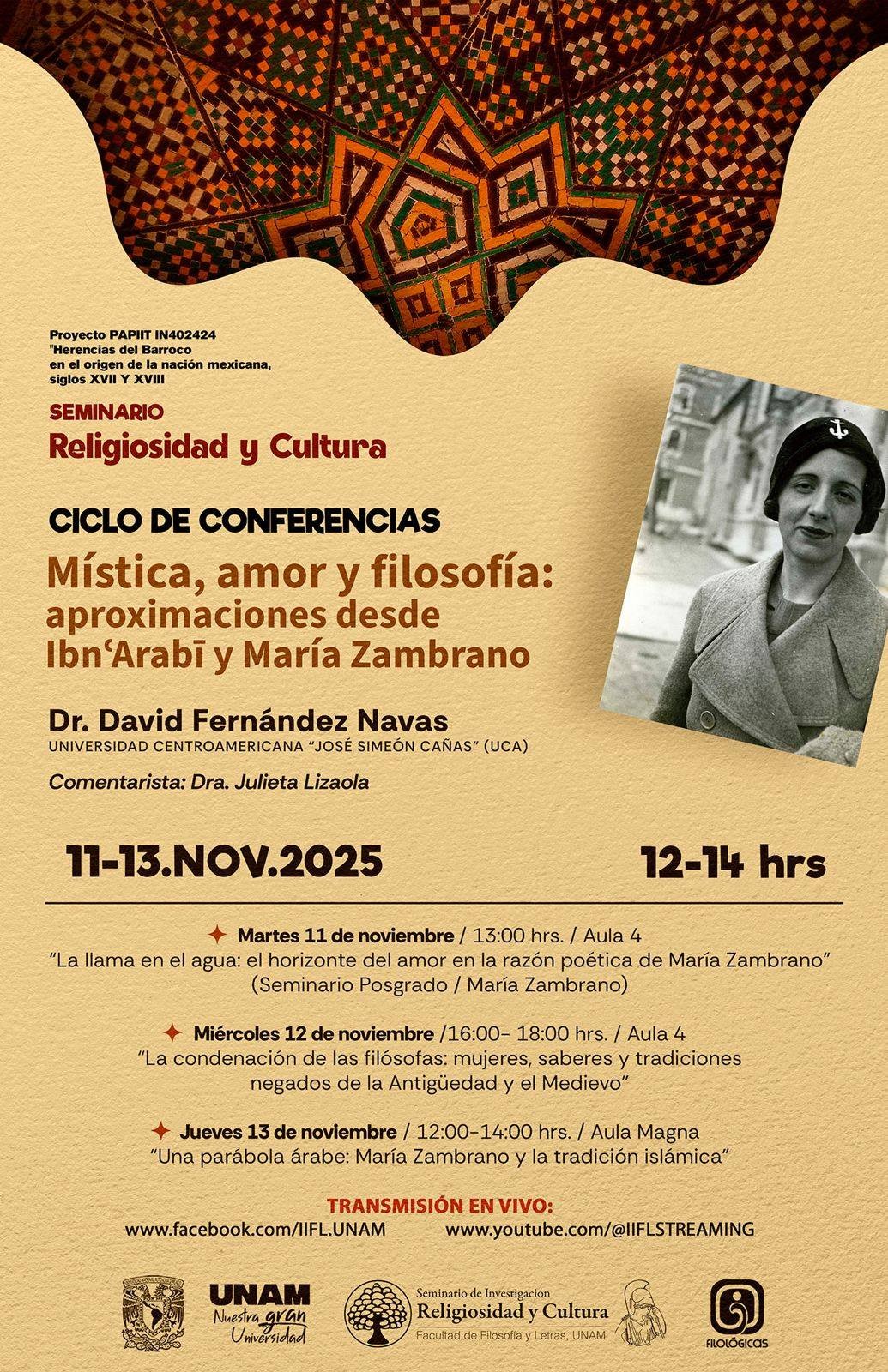 16:00 – 19:00 • Presentazione – Omar Zein, Muhyiddin Ibn Arabi Society (MIAS) Latina • Elisabetta Benigni, Università di Torino – La Sapienza dell’amore • Federico Salvaggio, Università di Udine – La nozione di lode (hamd) tra Cantico delle creature e Sufismo • Luca Patrizi, Università di Torino – San Francesco e il Sufismo • Inaugurazione della mostra di Antonella Leoni : “Il Cantico della Creature di San Francesco d’Assisi”.